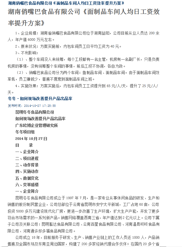 俏嘴巴-面制品车间人均日工资效率提升方案